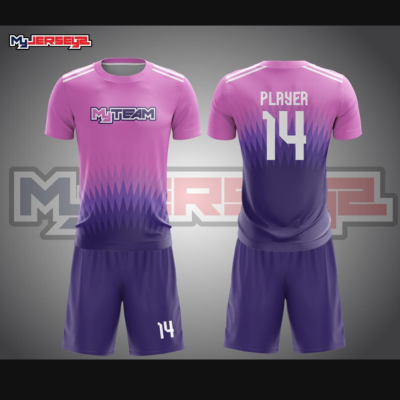 Retro-inspired pinstripe design with a modern twist of purple sleeves.